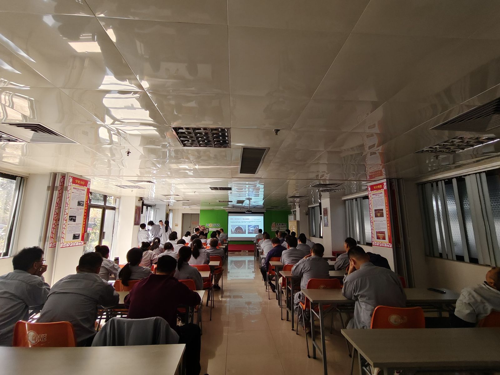實(shí)操后,全廠(chǎng)人員分批到培訓室觀(guān)看安全教育片,進(jìn)一步加強全體員工安全意識,我們的安全,永不放假。